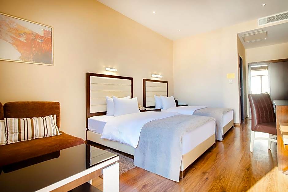 This spacious, air-conditioned apartment has a terrace and city views. It has a separate bedroom and living area, a satellite TV, sofa, mini-bar and a desk. Each apartment has a tea-and-coffee maker and a private bathroom with free toiletries.